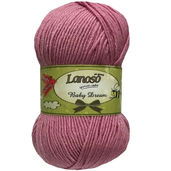Lanoso Baby Dream Gül Kurusu Bebe Örgü İpliği, %100 özel antipilling akrilik içeriğiyle bebek ve çocuk örgülerinde rahatlıkla kullanılabilecek bir ipliktir. Kaşındırma ve tüylenme yapmayan yapısı sayesinde, bebekler için güvenle tercih edilebilir. 100 gramlık yumaklarda 265 metre uzunluğa sahip olan bu iplik, orta kalınlık grubunda olup, şiş numarası 2 – 3 mm, tığ numarası ise 3 – 3,5 mm arasıdır.