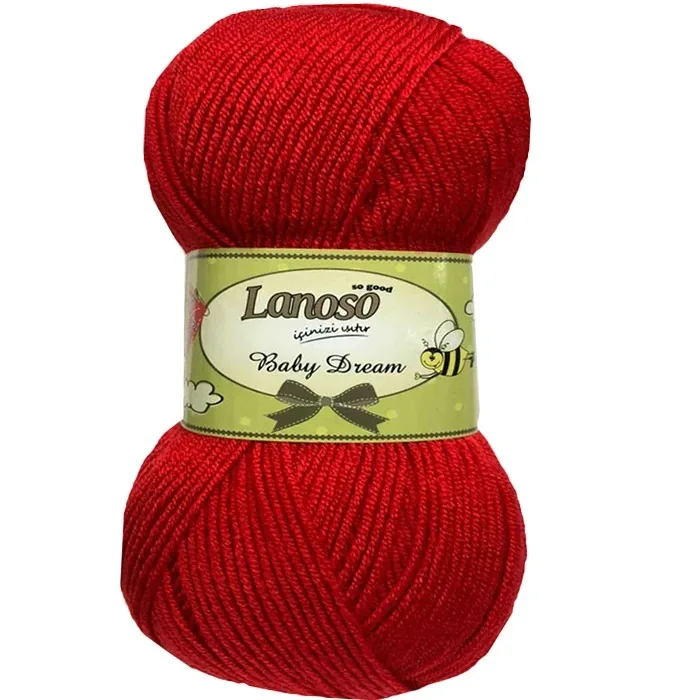 Lanoso Baby Dream Kırmızı Bebe Örgü İpliği, %100 özel antipilling akrilik içeriğiyle bebek ve çocuk örgülerinde rahatlıkla kullanılabilecek bir ipliktir. Kaşındırma ve tüylenme yapmayan yapısı sayesinde, bebekler için güvenle tercih edilebilir. 100 gramlık yumaklarda 265 metre uzunluğa sahip olan bu iplik, orta kalınlık grubunda olup, şiş numarası 2 – 3 mm, tığ numarası ise 3 – 3,5 mm arasıdır.