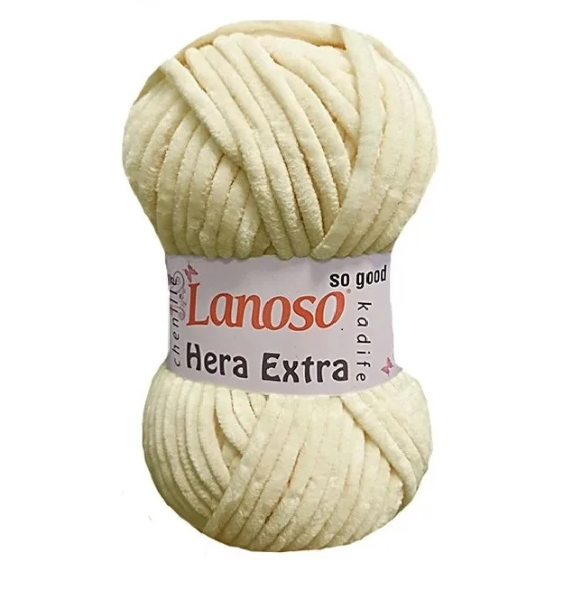 Lanoso Hera Extra Krem Kadife İplik C-901, yüksek kaliteli içeriği ve kadife dokusuyla örgü severlerin favorisi! %85 Polyester ve %15 Polyamid içeriği sayesinde yumuşak, dayanıklı ve konforlu bir kullanım sunar. 100 gram ağırlığında ve 100 metre uzunluğundaki bu özel iplik, kalın yapısıyla hızlı ve kolay örülerek şık tasarımlar oluşturmanıza yardımcı olur.